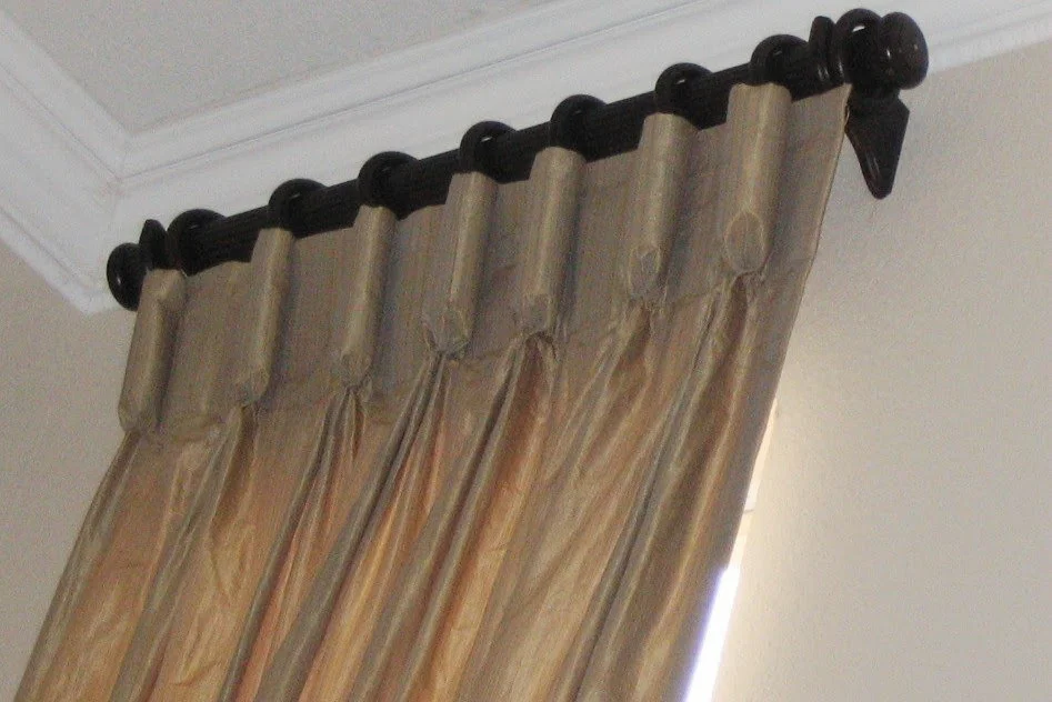 To complete the look, the drapes were paired with box-pleated valances mounted on beautiful decorative wooden rods. It’s the perfect blend of structural precision and timeless elegance.